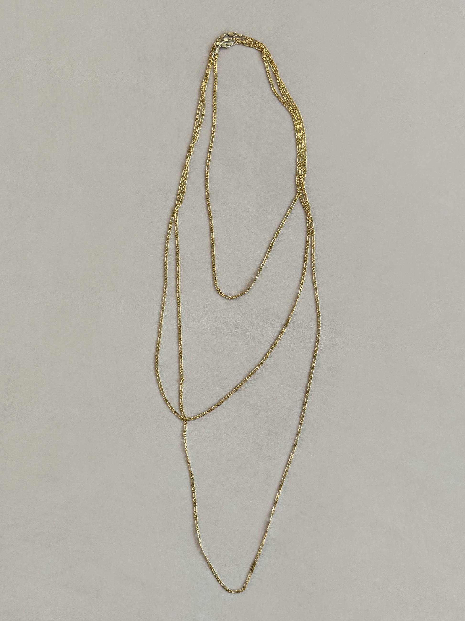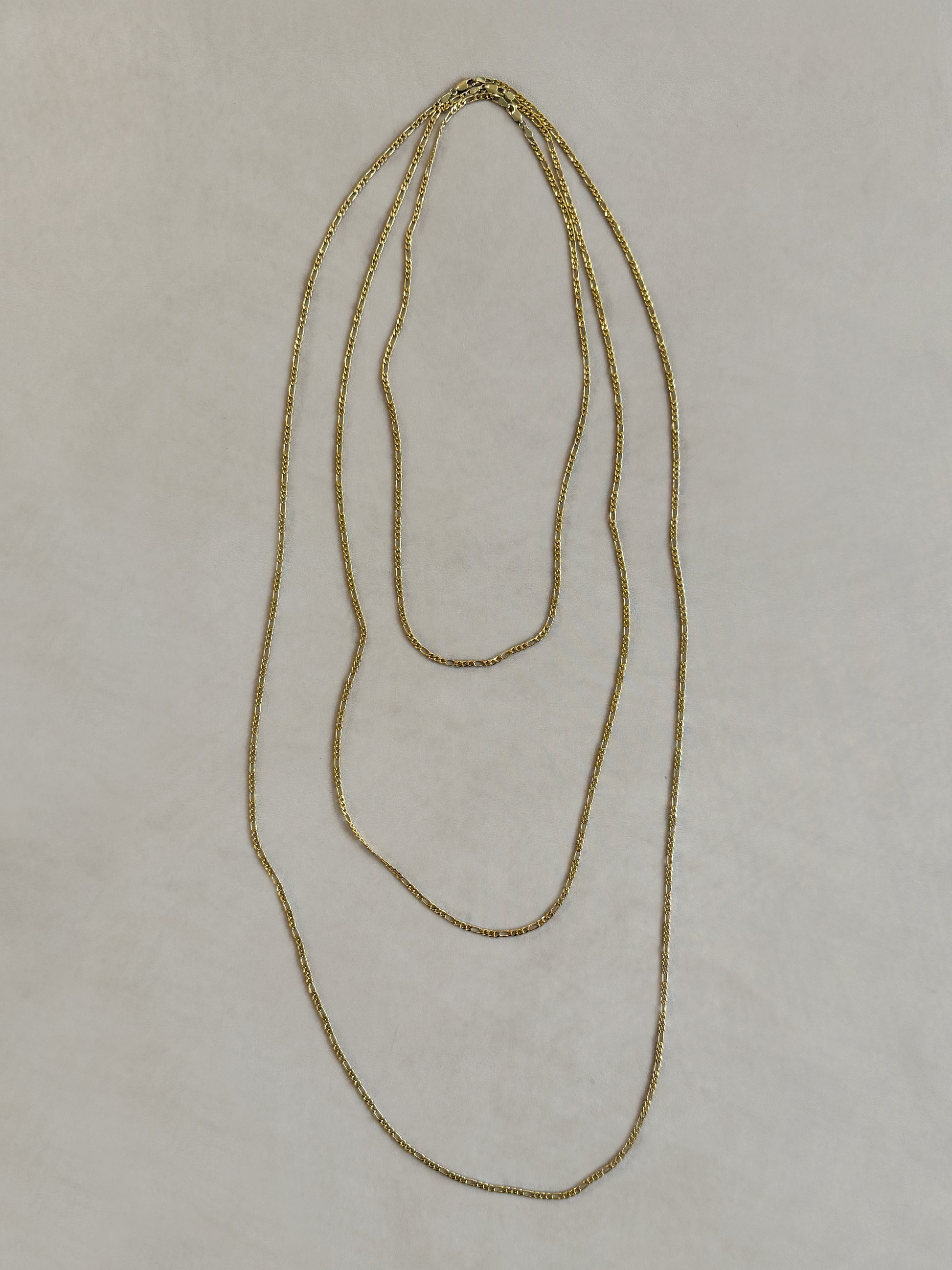 Wear it 10+ ways—tripled, doubled, reversed, long, or layered—across the neck, wrist, or waist. Its versatility is unmatched, but it’s the silhouette that sets it apart.